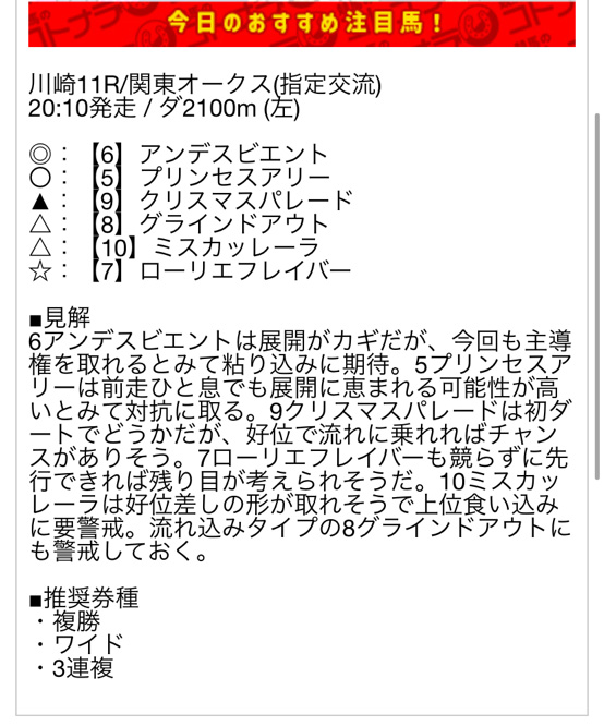 さすがですね!大日本馬帝国はこういう他の人が知らない本当に勝てる予想サイトの無料情報を教えてくれる!助かってます!