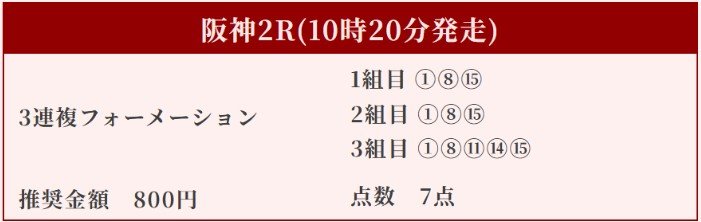 阪神7Rは三連単(24点)で的中