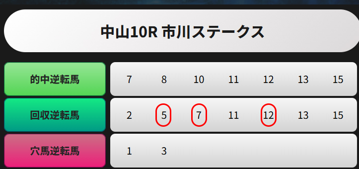 的中逆転馬でピックアップされてる7頭で三連複・三連単ボックスを購入